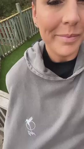 Crafted from 100% pure cotton and cut in an oversized fit, it offers all-day comfort and ease of movement. The ribbed cuffs and hem provide a polished finish, making it the perfect companion for any occasion. On the left chest, you'll find a subtle hummingbird logo, with the bold Alexandra George branding making a statement on the back.