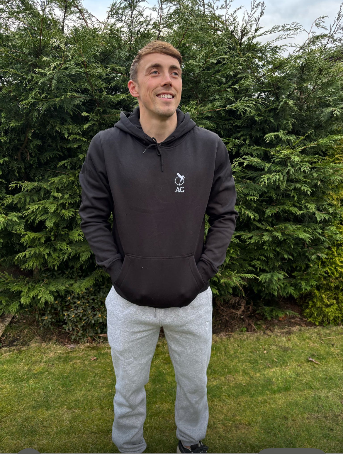 Ben, a semi-professional footballer, is seen modeling a size medium in Heather Grey, though these sweatpants are also available in Black and a wide range of sizes, from Small to XXXXXLarge, ensuring a great fit for everyone.